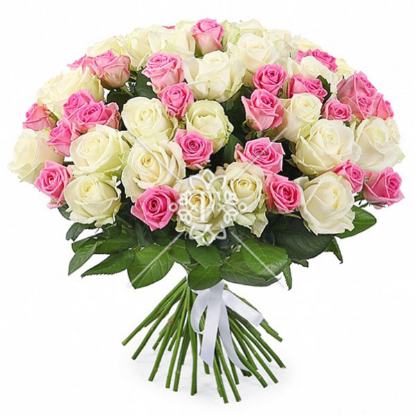 роза белая и розовая - 51 шт., упаковка, лента.